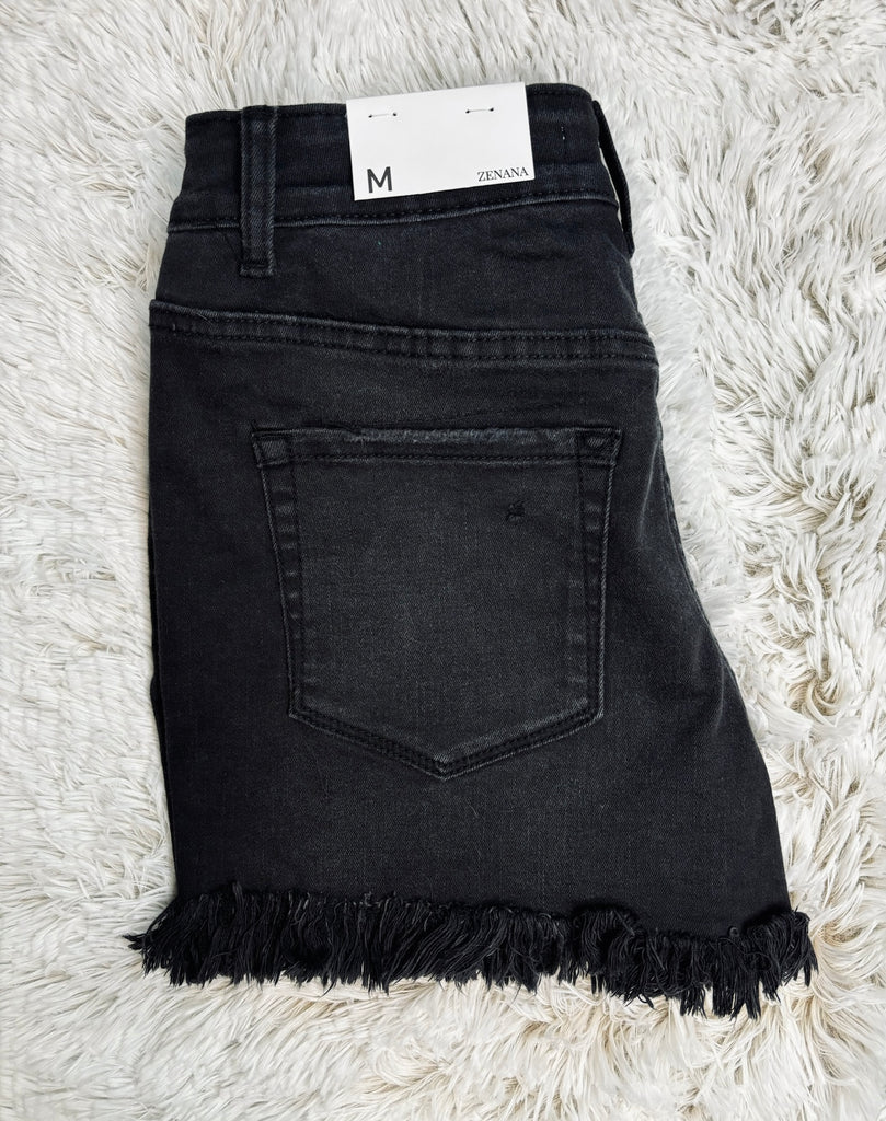 Shorts // Zenana Brand // Mid Rise // Zipper Fly // Frayed Edges // Must Have Basics // High Stretch // Summer Staple // Pockets