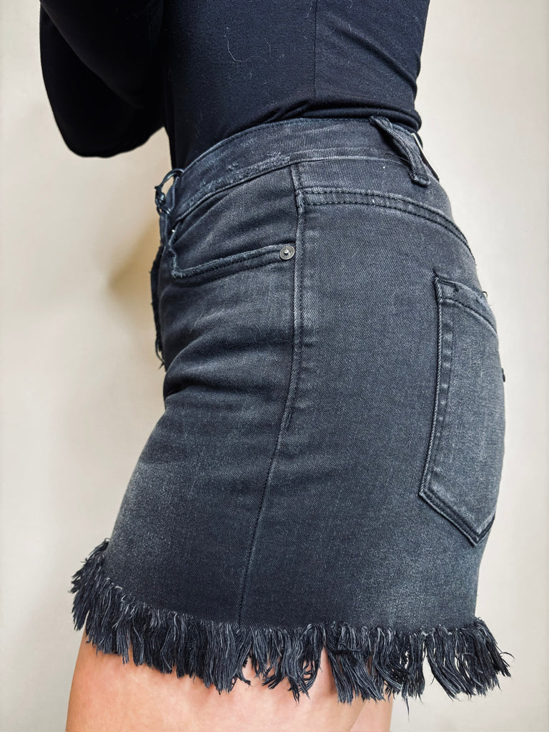 Fit Guide: These Black Denim Shorts are a must-have basic that effortlessly combines edge and comfort. Featuring a mid-rise fit with a classic zipper fly and frayed edges, they bring a cool, laid-back vibe to any summer look. Made with high-stretch fabric, they offer flexibility and comfort without compromising on structure. Complete with functional pockets and a flattering silhouette, these shorts fit true to size and are perfect for everyday wear. Whether you're pairing them with a tank or dressing them up with a blouse, they’re a versatile summer staple you’ll reach for again and again.