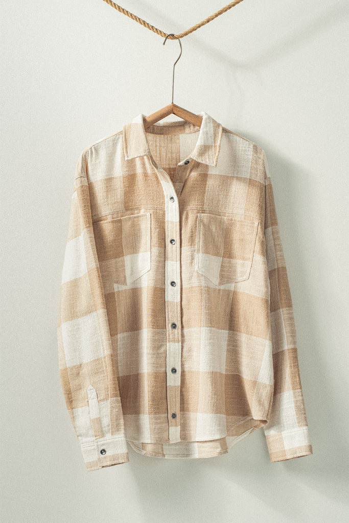 Fit Guide: This plaid flannel is the perfect mix of comfort and style with its relaxed fit and soft feel. Designed with front pockets and a gorgeous color combo, it’s easy to wear on its own or layered under jackets for a cozy fall look. Runs true to size with a relaxed silhouette, making it a versatile staple for your wardrobe.