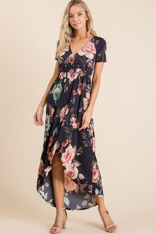Short Sleeve // Floral Dress // Knit Midi Dress // V neck // Flowy And Beautiful // Tulip Skirt // Gorgeous Dress