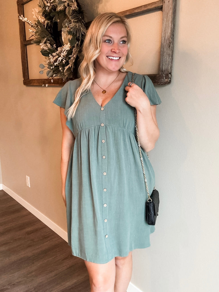 Simple // V Neck // Non-Functional Button Down// Flutter Sleeve // Relaxed Fit // Pockets // Comfortable // Babydoll Fit