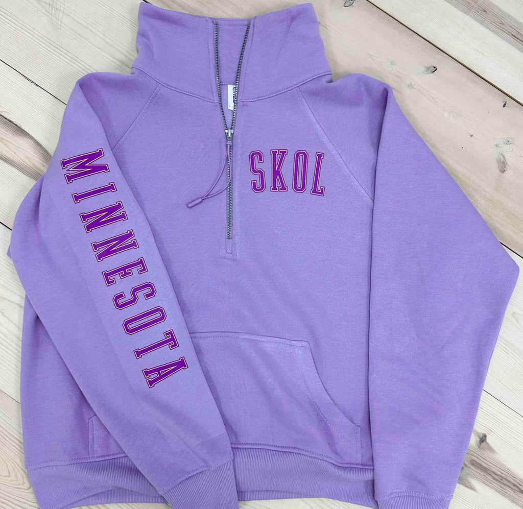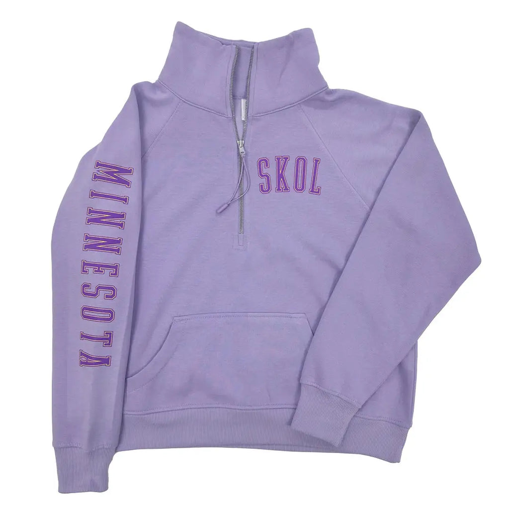 Minnesota // SKOL // Boxy Style // Half-Zip // Raglan Sleeves // Front Pouch Pocket // Ribbed Cuffs & Hem // Port & Co. Brand
