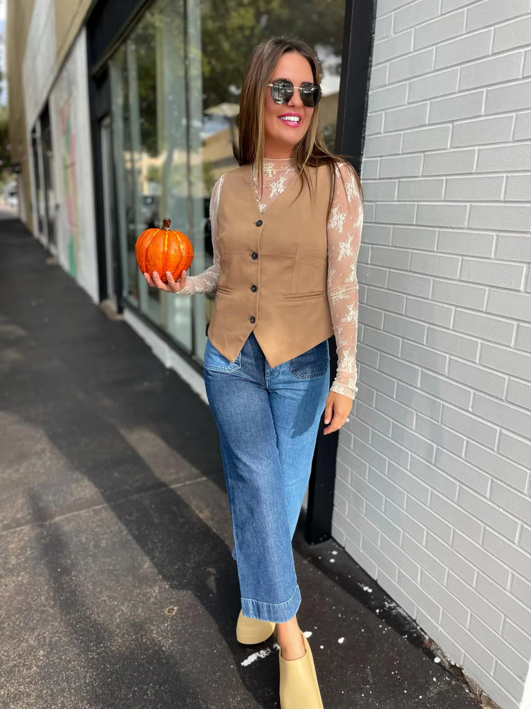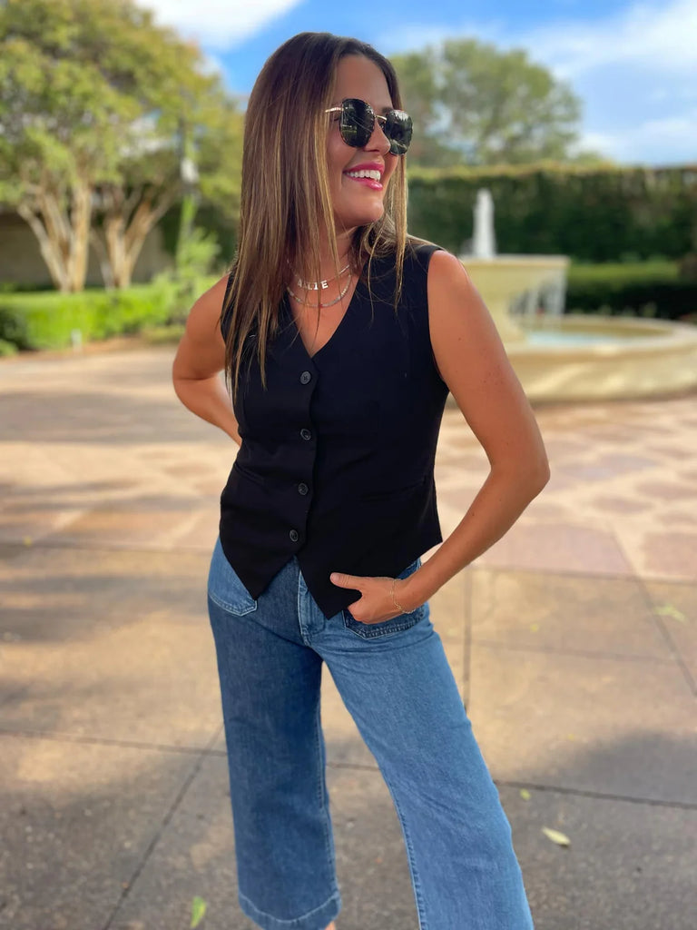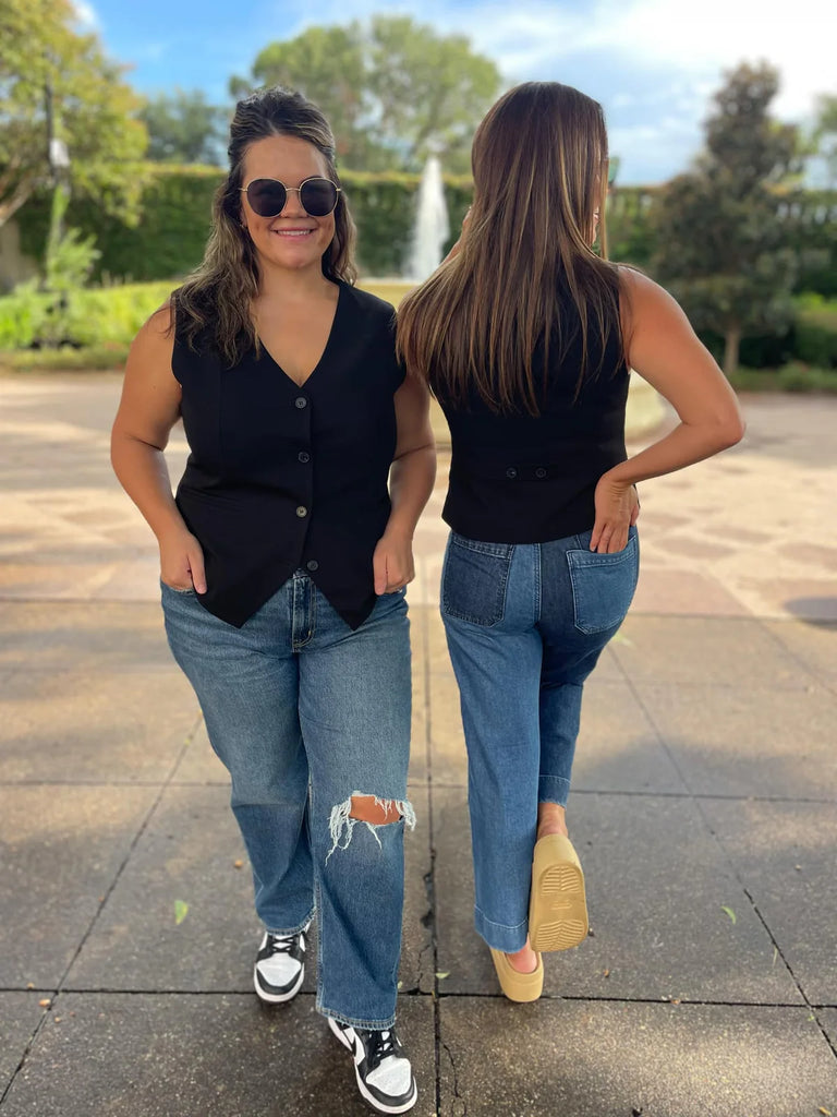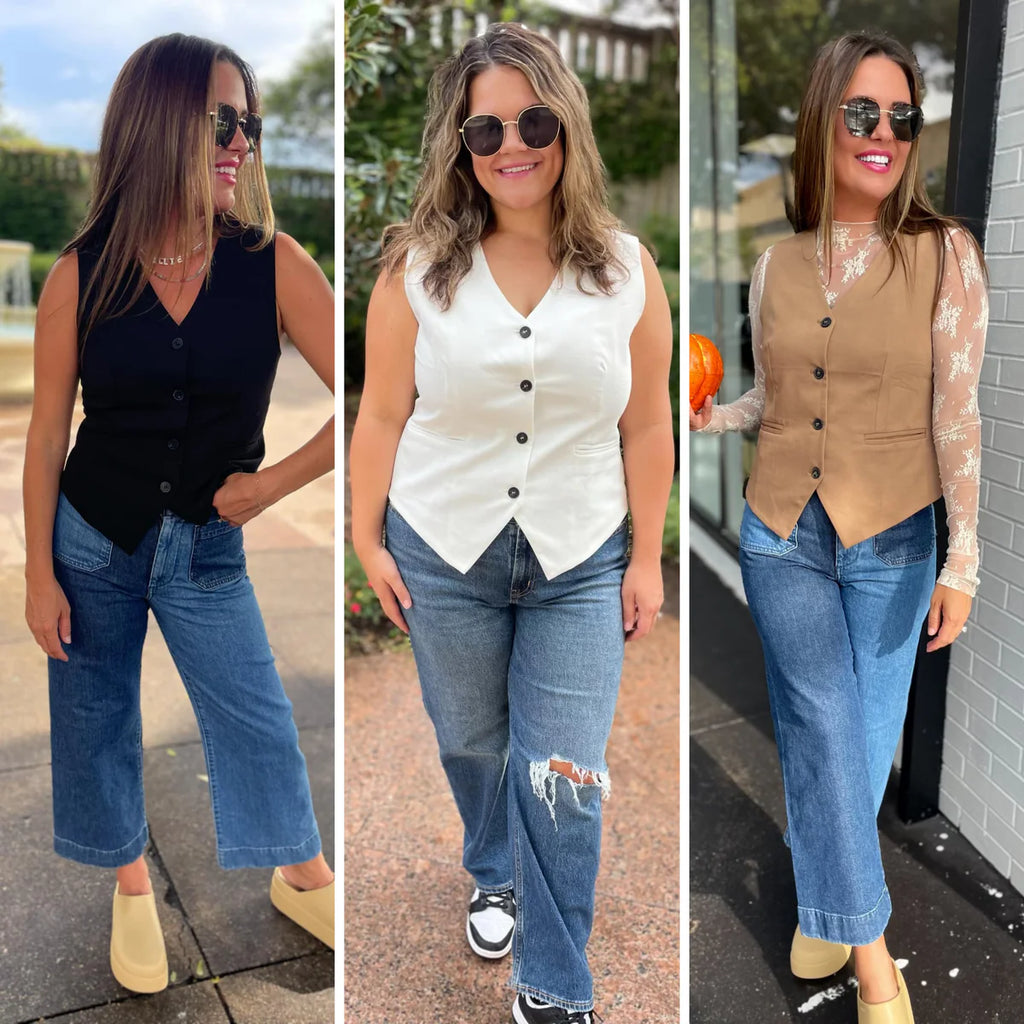 Vest // Button Up // Trendy // Classy Style // Slit Pockets // Button Cinch On Back // Comfortable