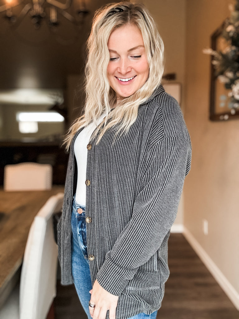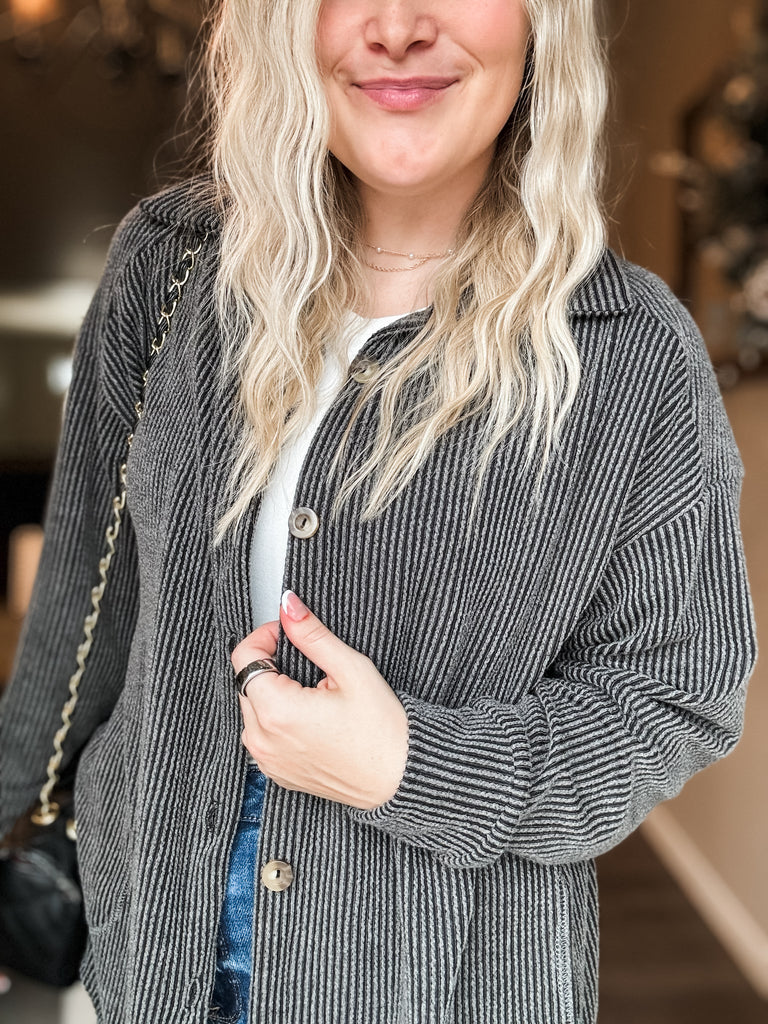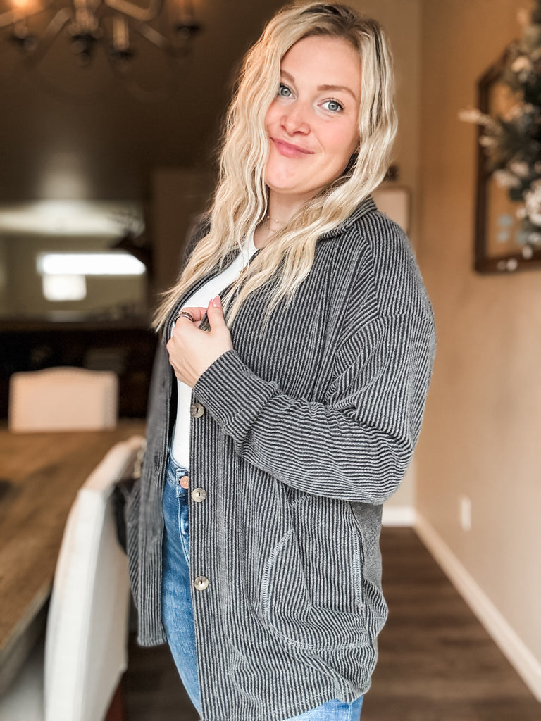 Ribbed Material // Comfy Shacket // Side Pockets // Wear Buttoned or Unbuttoned // Simple Style // Casual Chic // Fall Favorites