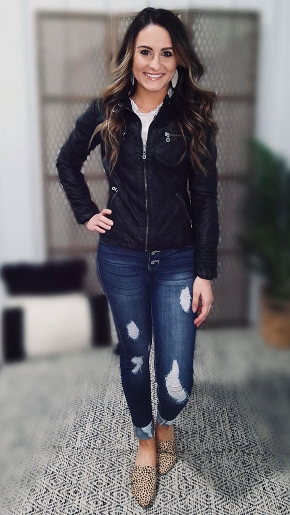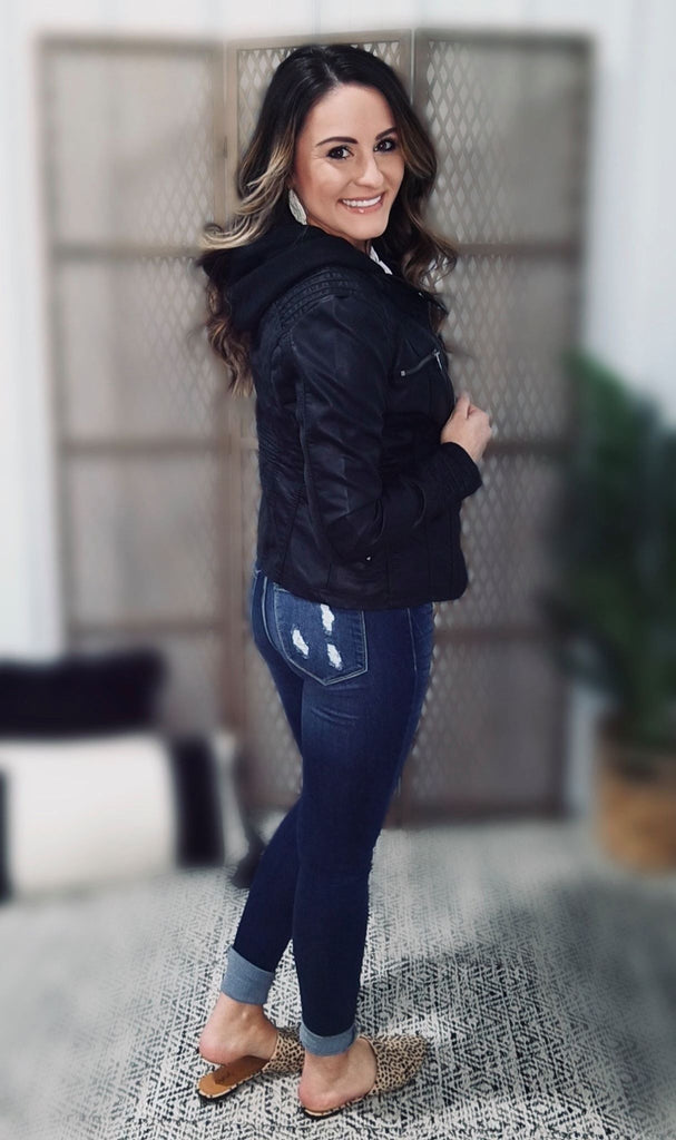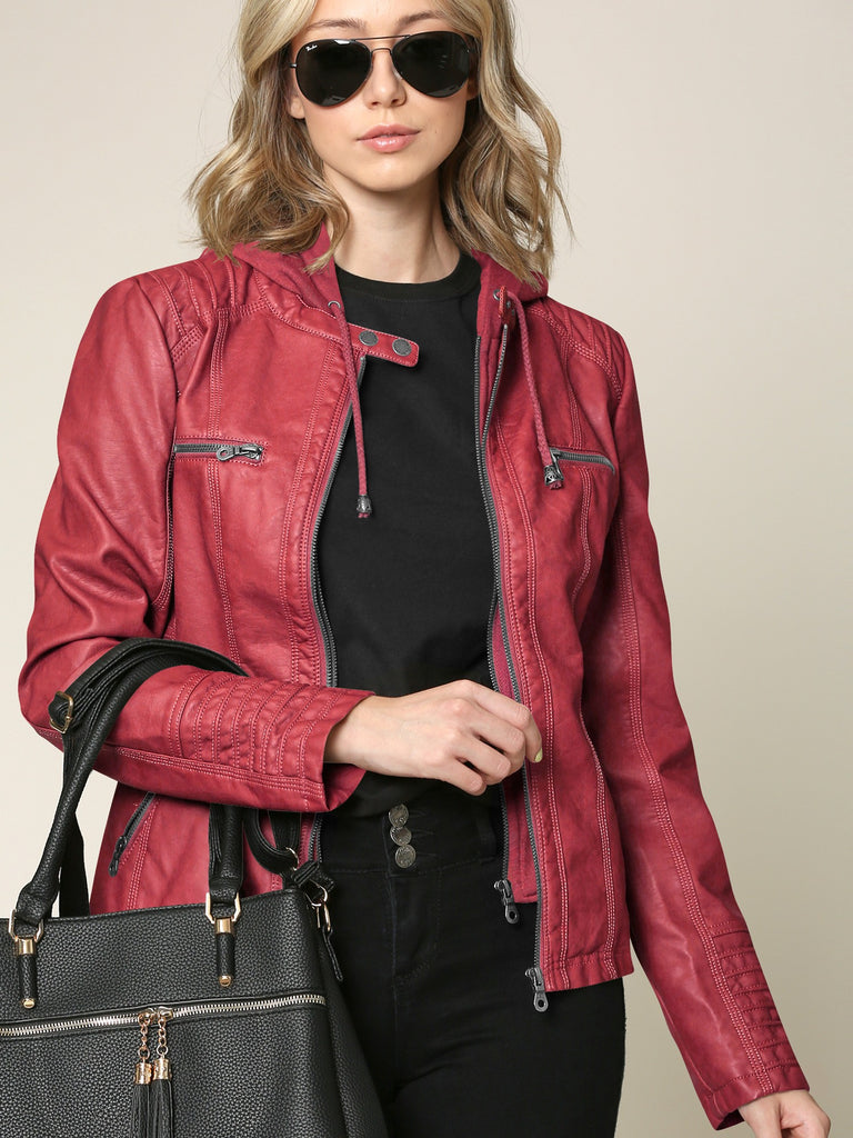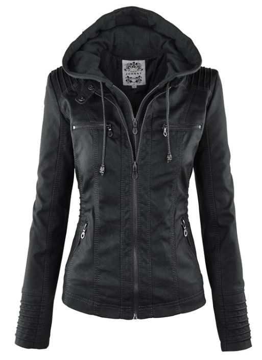Jacket // Faux Leather // Great Quality // Removable Lining // Removable Hood // Tighter Fit // Drawstring // Zipper Pocket Details