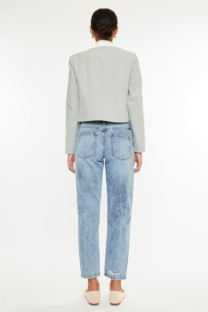 Mom Jeans // High Rise // Slight Distress // Medium Wash // Rigid // Zip Fly // Ankle Distress // No Stretch