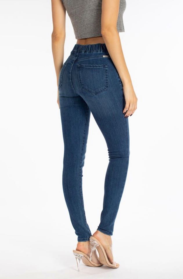 Pull-On Skinny Jeans // Medium Wash // Mid-Rise // Wide Elastic Waistband // Faux Front Pockets // Functional Back Pockets // Stretchy Fit