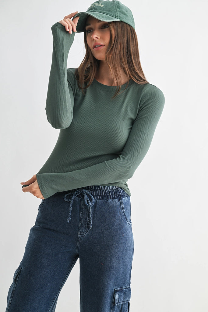 Mella Micro-Ribbed Long Sleeve - Pine