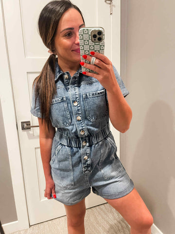 Getting Out Long Sleeve Hoodie Romper in Navy