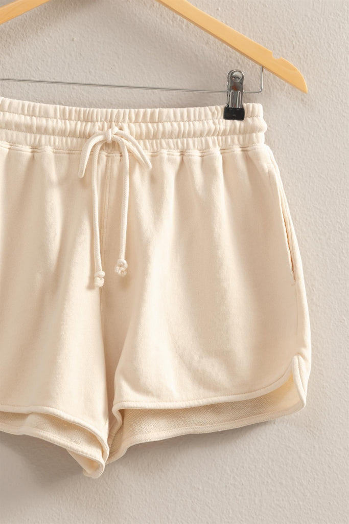 Fit Guide: Meet your new off-duty favorite. The Double Zero Shorts feature an ultra-comfy, mineral-washed finish with a high-rise fit and an elastic drawstring waistband for effortless wear. Made from a soft cotton blend, these lounge-ready shorts offer a relaxed, oversized silhouette that’s perfect for cozy days in or casual errands out. Designed with comfort in mind, they run generously—so we recommend sizing down for the best fit. Available in versatile neutral tones to mix and match with everything in your closet.