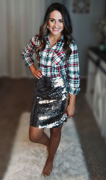Sparkle So Bright Sequin Skirt - SIZE SMALL