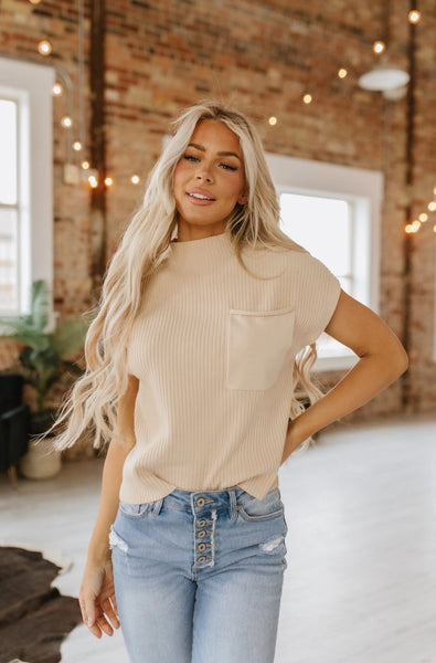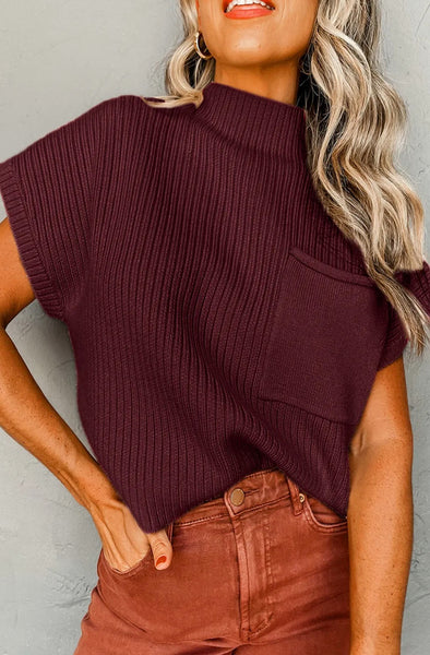 Chic Style // Super Soft & Comfy Material // Ribbed Knit // Patch Pocket // Short Sleeve Sweater // Trending // Simple Style // High End