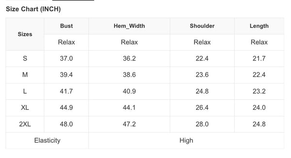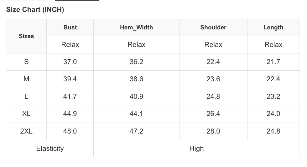 Sizing: Size Chart Posted