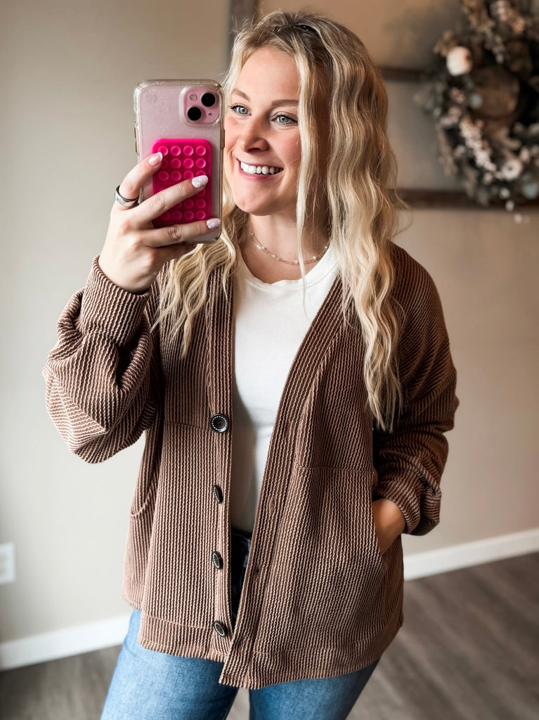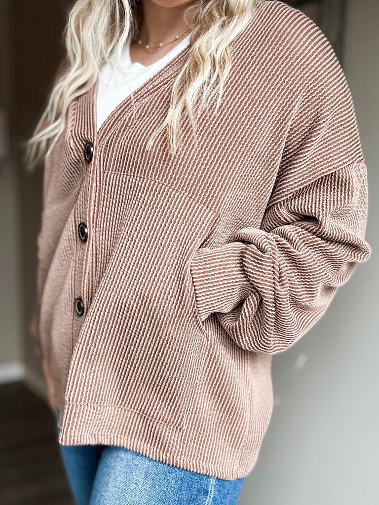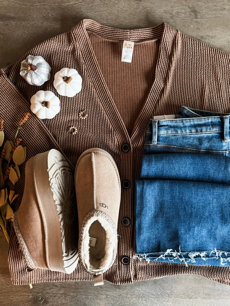 Ribbed Material // Comfy Cardigan // V Neckline // Wear Buttoned or Unbuttoned // Simple Style // Casual Chic // Fall Favorites // Balloon Arms // Pockets