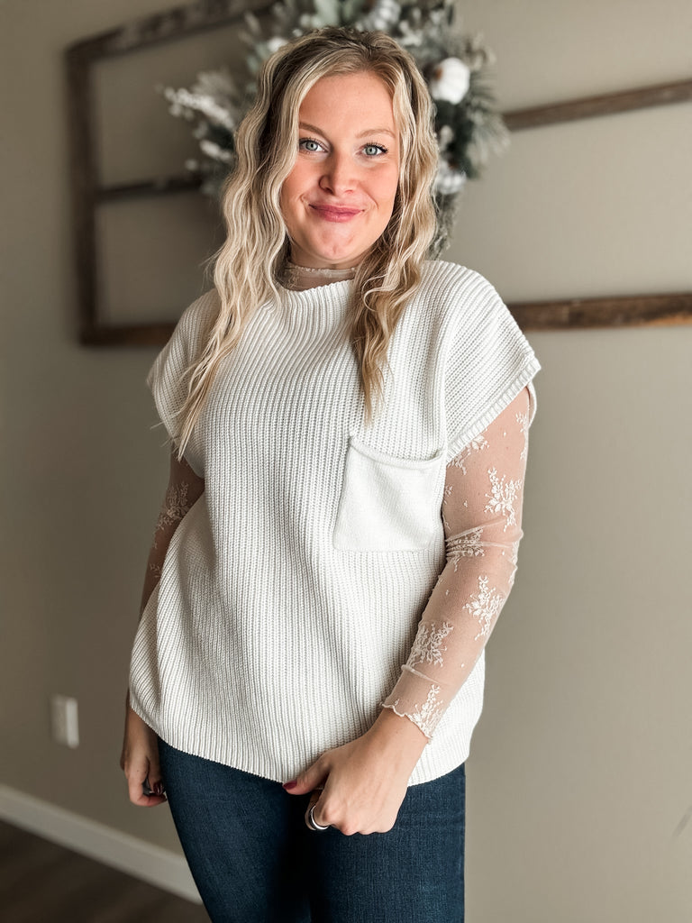 Knit Ribbed Vest // Intricate Textures // Crew Neckline // Layering Piece // Trendy // Transitional Piece // Front Pocket // Sleeveless