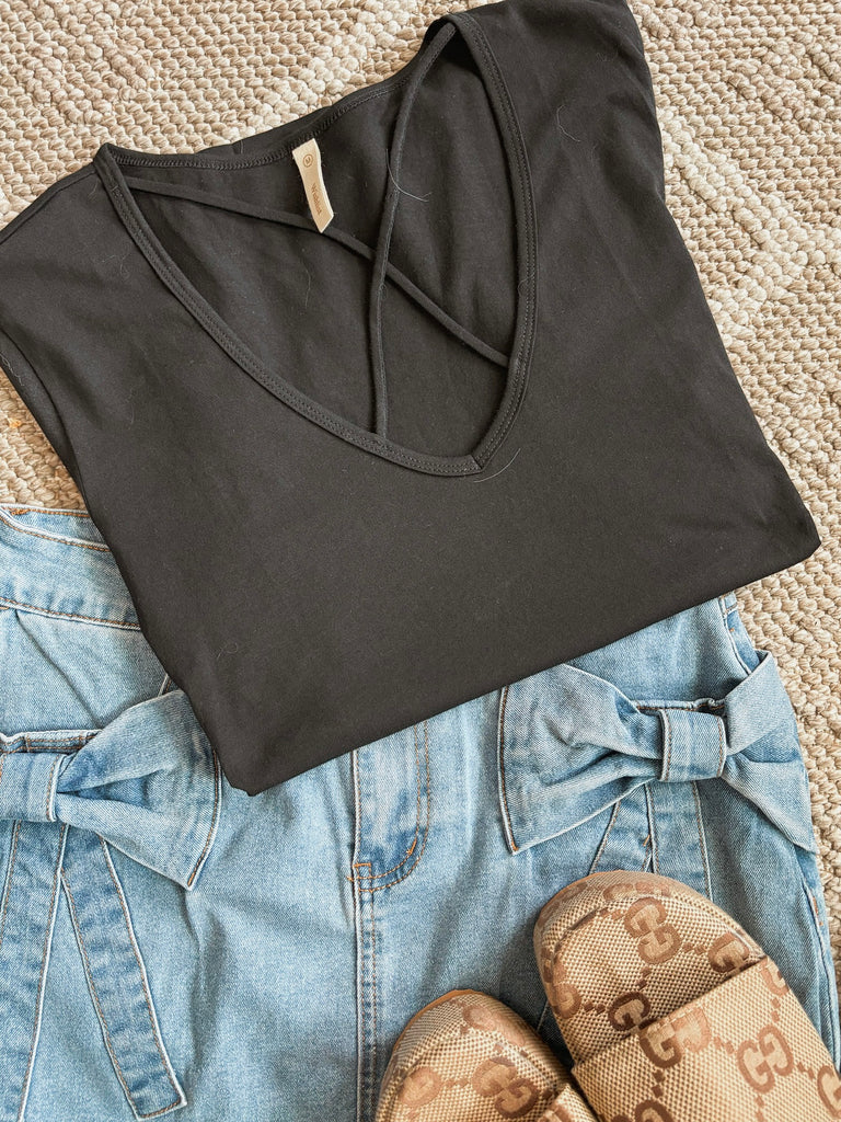 Whitley Criss Cross Tee - Black - SIZE SMALL