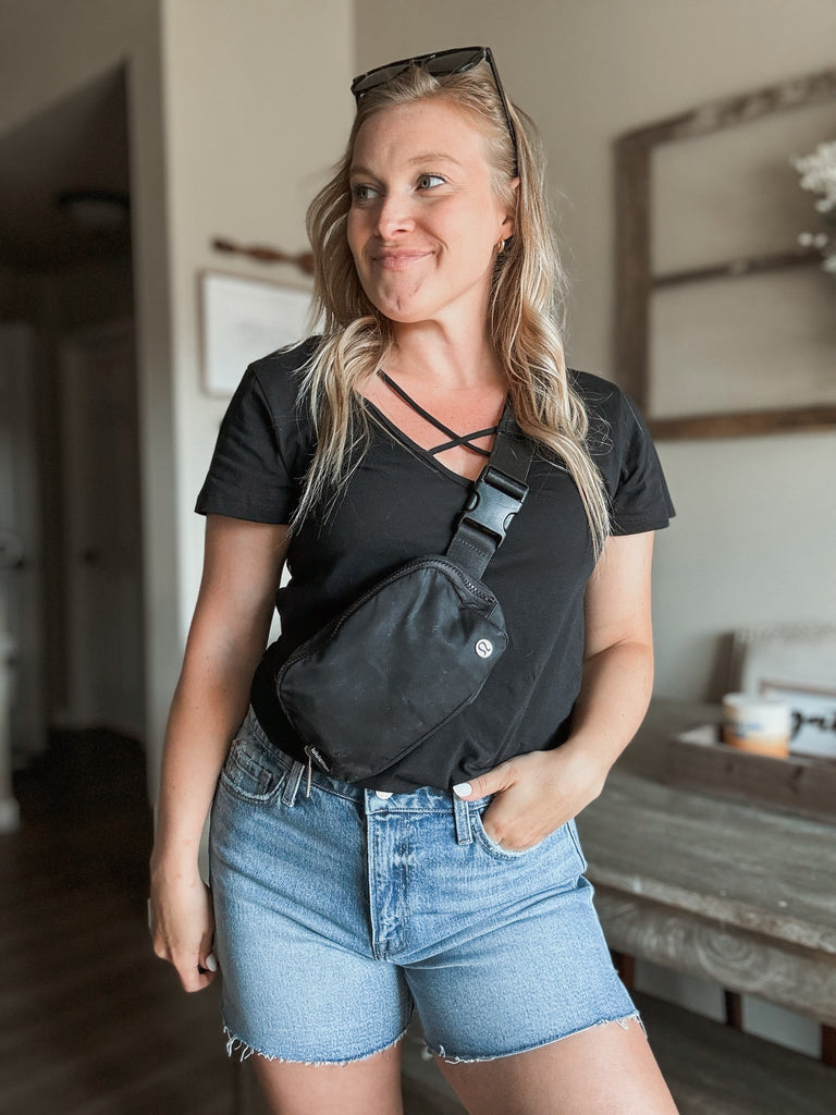 Tee Shirt // V Neckline // Criss Cross Detail // Basic Top // Affordable Finds // Comfortable // Light and Airy