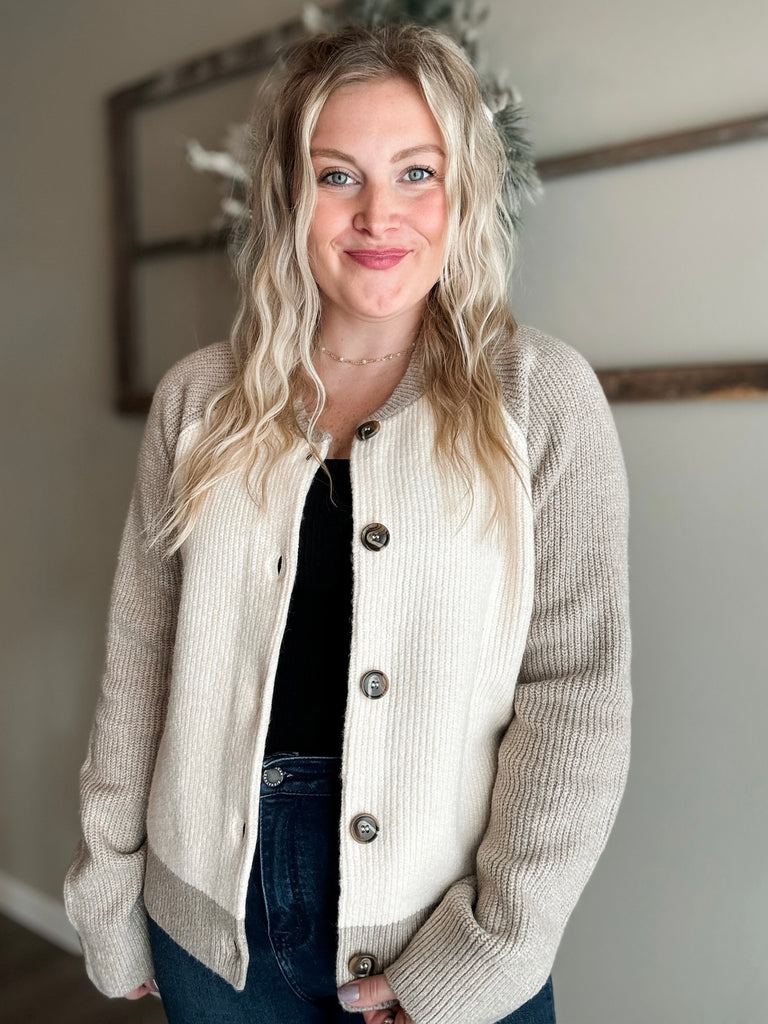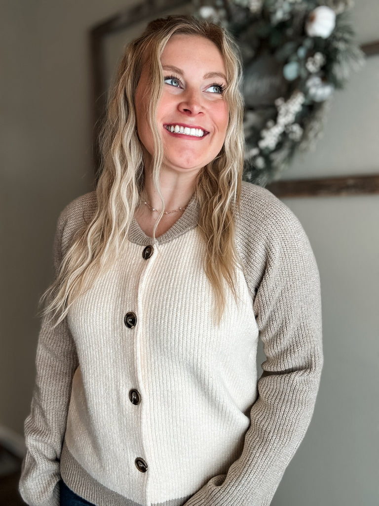 Fit Guide: This Hem & Thread Colorblock Cardigan fits true to size with a comfortably relaxed silhouette that’s perfect for layering. The fabric is insanely soft with just the right amount of stretch, giving it that cozy, designer-inspired feel you’ll want to live in. The button-up front lets you switch up your look — wear it open for a laid-back vibe or buttoned for a more polished, put-together style. The cream and taupe colorblock design adds a chic, modern touch that pairs easily with denim, leggings, or trousers. A versatile, everyday cardigan you’ll reach for over and over.
