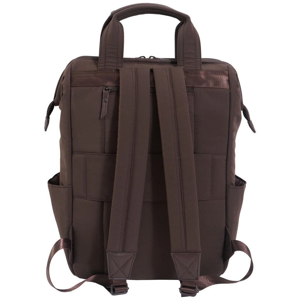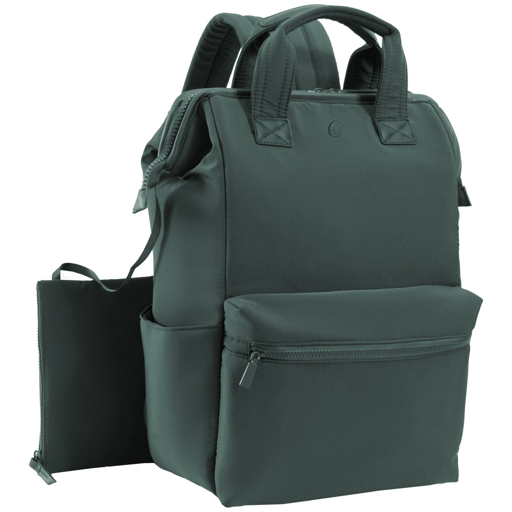 Backpack // Lightweight Nylon // Fits Laptops Up To 15” // Front Zip Pocket // Side Water Bottle Pockets // Add-A-Bag Travel Strap // Padded Interior Sleeve // Quilted Back Panel // Adjustable Straps // Includes Travel Bottle Pouch