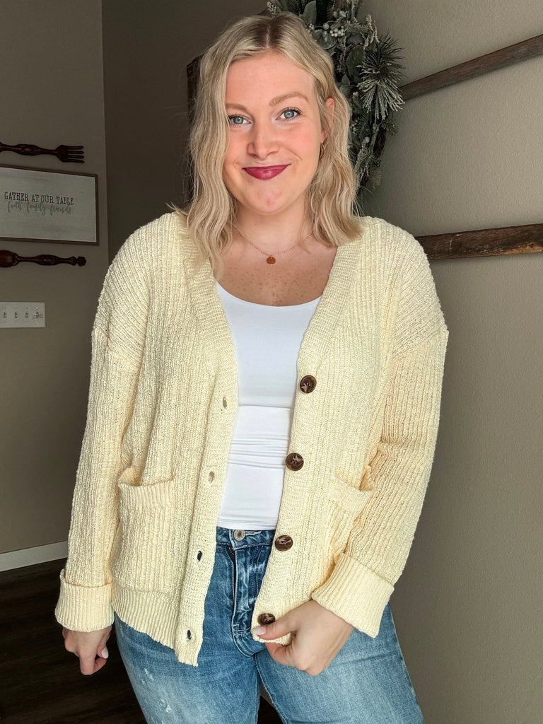Cardigan // Cozy Soft // Ribbed and Knitted // V Neck // Functional Buttons // Dress Up or Dress Down // Stretchy // Pair With Jeans or Leggings // Looks For Less