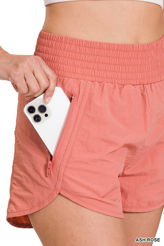 Windbreaker Shorts // Side Pockets // Athleisure Wear // Built-In Briefs // Zipper Pockets