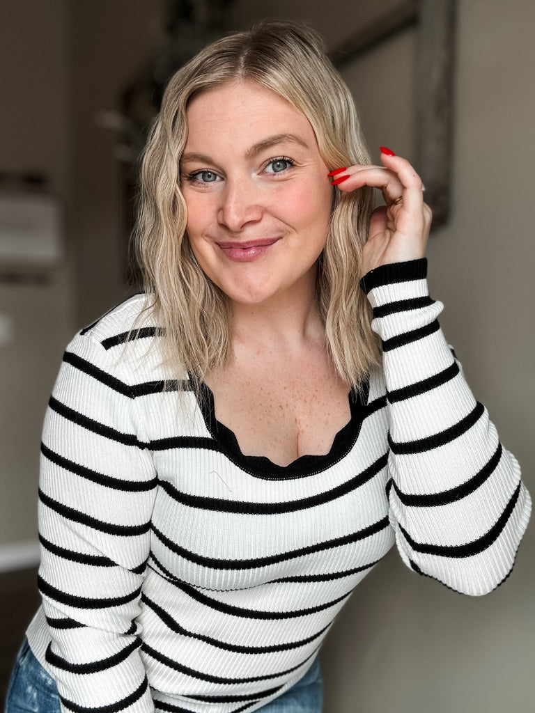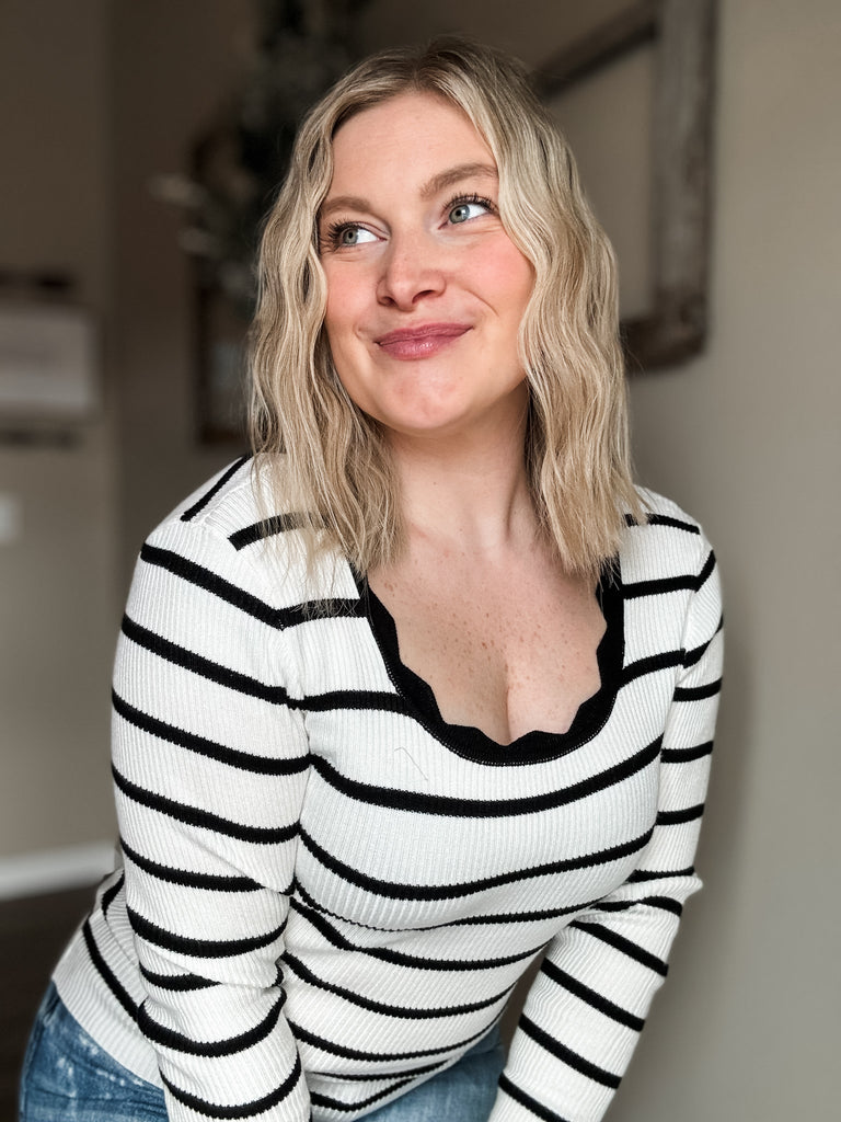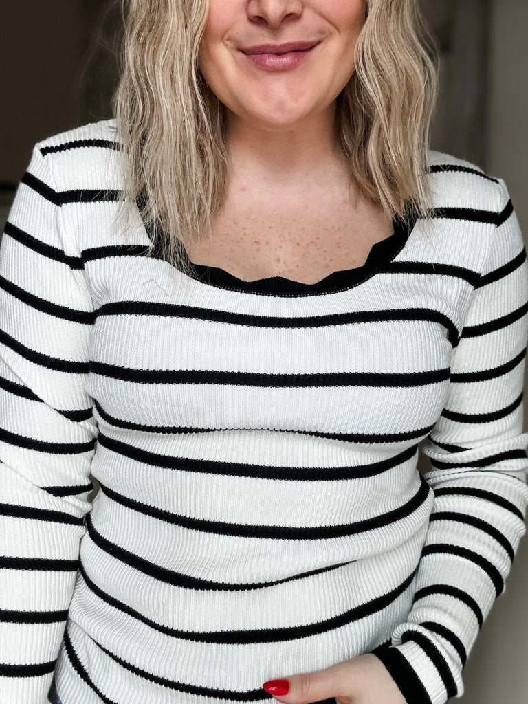 Long Sleeve // Striped // Scalloped // Supportive & Stylish // Fitted // Perfect For Layering Or Wearing Alone // Extremely Stretchy // Ribbed // Comfortable & Cute