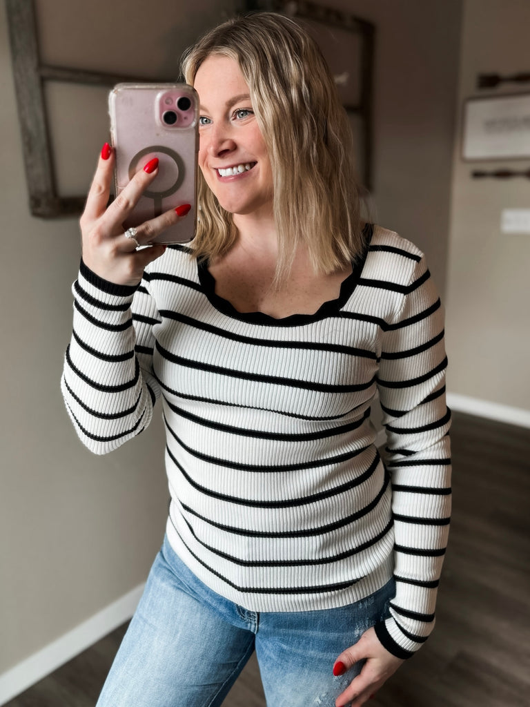 PREORDER Kolin Scalloped Stripe Long Sleeve