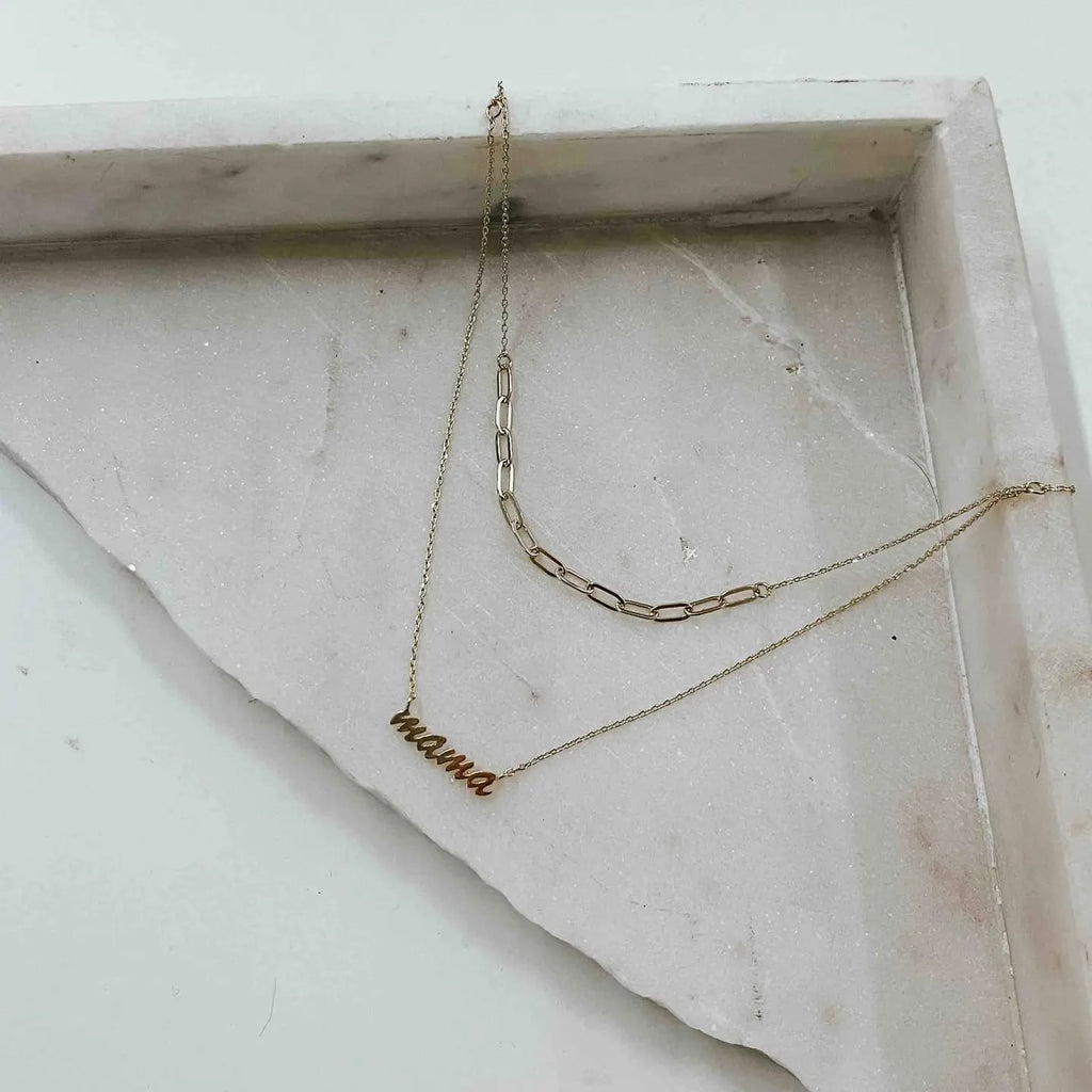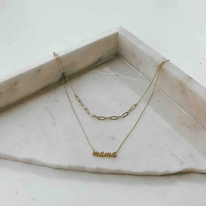Layered Design // Mini “Mama” Script Detail // Paperclip Chain Accent // Gold Plated // Stainless Steel // Everyday Essential // Perfect Gift for Mamas