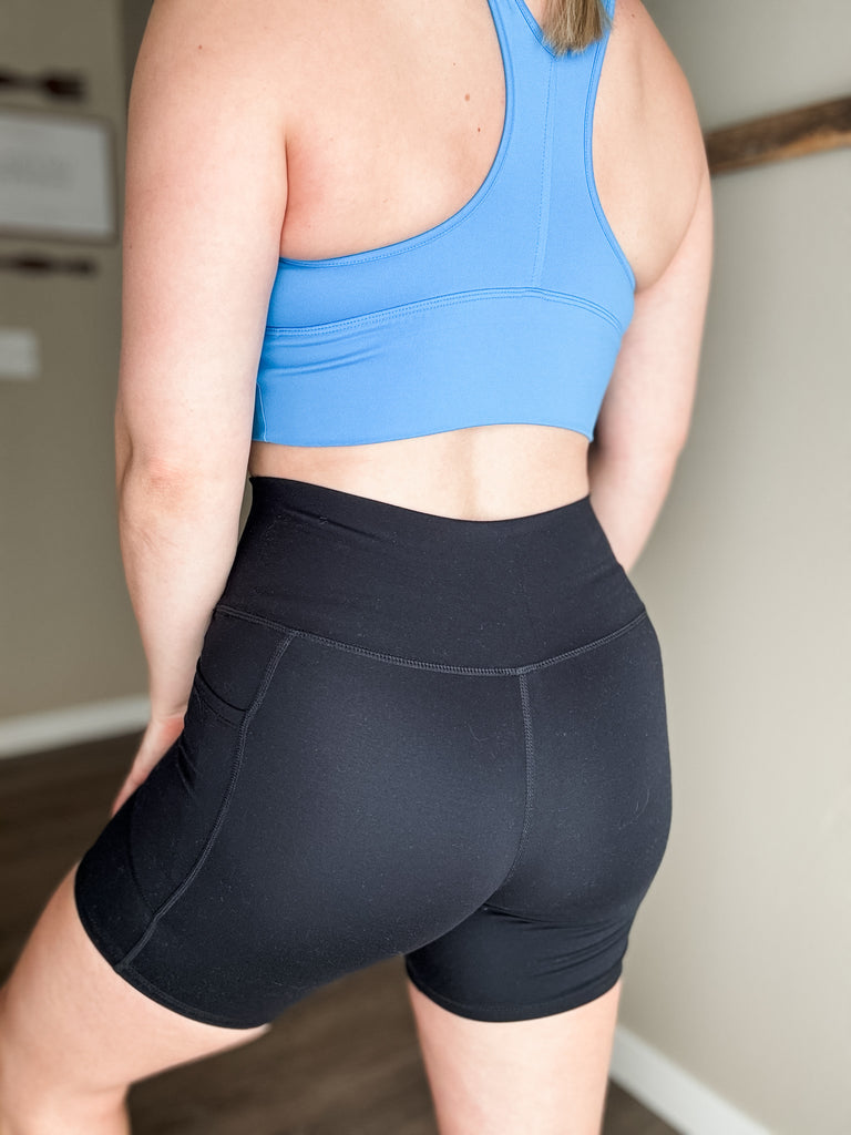 Biker Shorts // Soft Material // High Waisted // Gym Wear // Lounge Wear // Mid-Thigh Length // Side Pockets