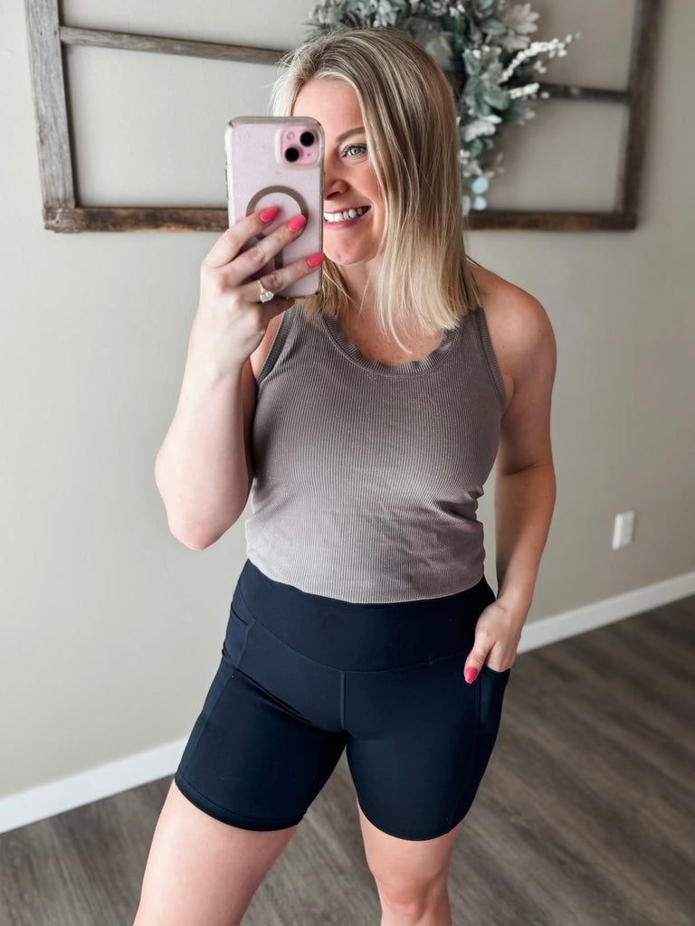 Fit Guide: Your go to pair of biker shorts. These biker shorts are the kind you’ll reach for on repeat. Designed with a flattering high waisted fit and soft, stretchy material, they move with you whether you’re heading to the gym, going for a walk, or just keeping it casual for the day. The mid thigh length gives great coverage, and the side pockets are perfect for holding your phone or keys when you’re on the go. Easy to style with oversized tees, tanks, or sweatshirts, they’re a true everyday essential. Even though these have great stretch, I recommend sizing up one size as they do run a bit on the smaller side.