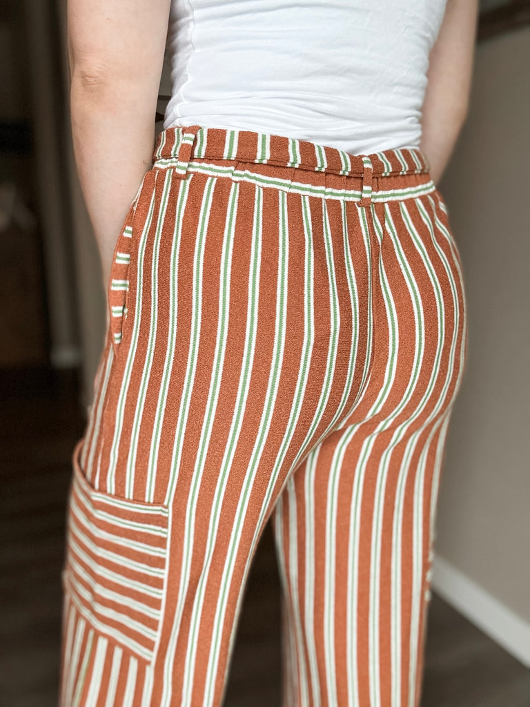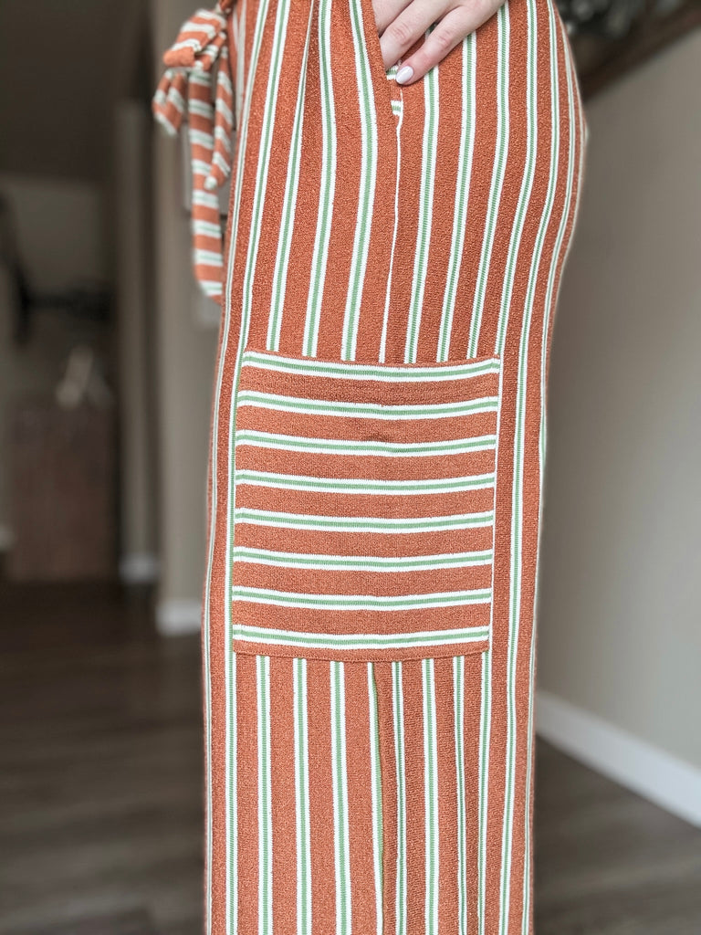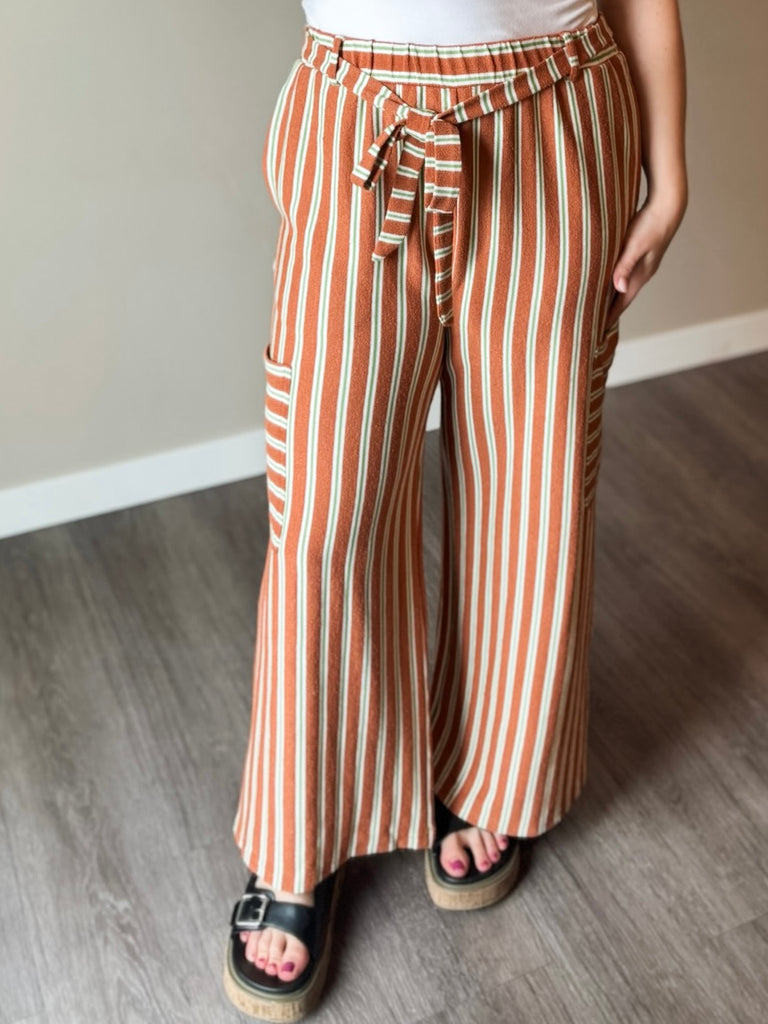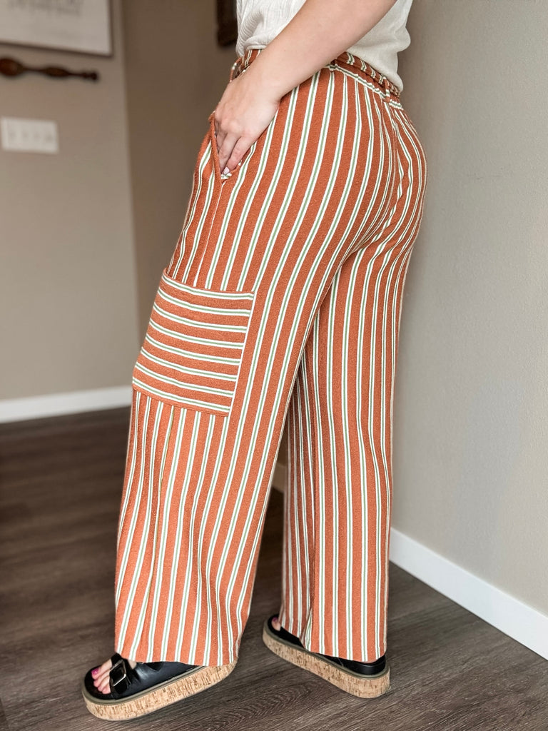 Fit Guide: Talk about a fun pair of pants — the stripes, the texture, the belt… what more could you want? These straight-leg pants have a relaxed, comfortable fit with an elastic waistband and belt for an adjustable, flattering feel. The textured fabric is soft with just enough stretch, making them easy to move in and perfect for everyday wear. They also double as a chic swimsuit cover-up! Stick with your usual size for a perfect fit!